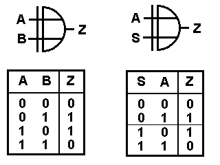 Jetzt ist aus meinem Entweder-Oder-Gatter ein steuerbarer Inverter für B geworden, der das Invertieren auch unterlassen kann, je nachdem, wie der Steuereingang A (in Zukunft werde ich ihn S nennen) elektrisch belegt ist.