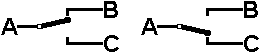 das linke Bild stellt einen Ruhekontakt AB dar, das rechte einen Arbeitskontakt AC.