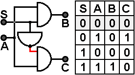 Mauszeiger auf einen der Eingänge A oder S oder in die gewünschte Zeile der Wertetafel richten und Links-Klick