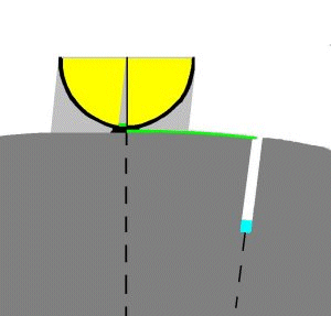 (A gnomon with a diameter of 1% of the radius of the scaphe and a hemispheral peak -middle of the gnomon's hemisphere is the center of the scaphe's hemisphere- gives always a pointing shadow of the sun with a distinctive peak at the right place, as the angular diameter of the sun is a hundredth of a radian.)