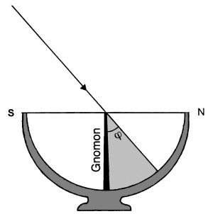 - water pit or gnomon in Syene, scaphe in Alexandria.
