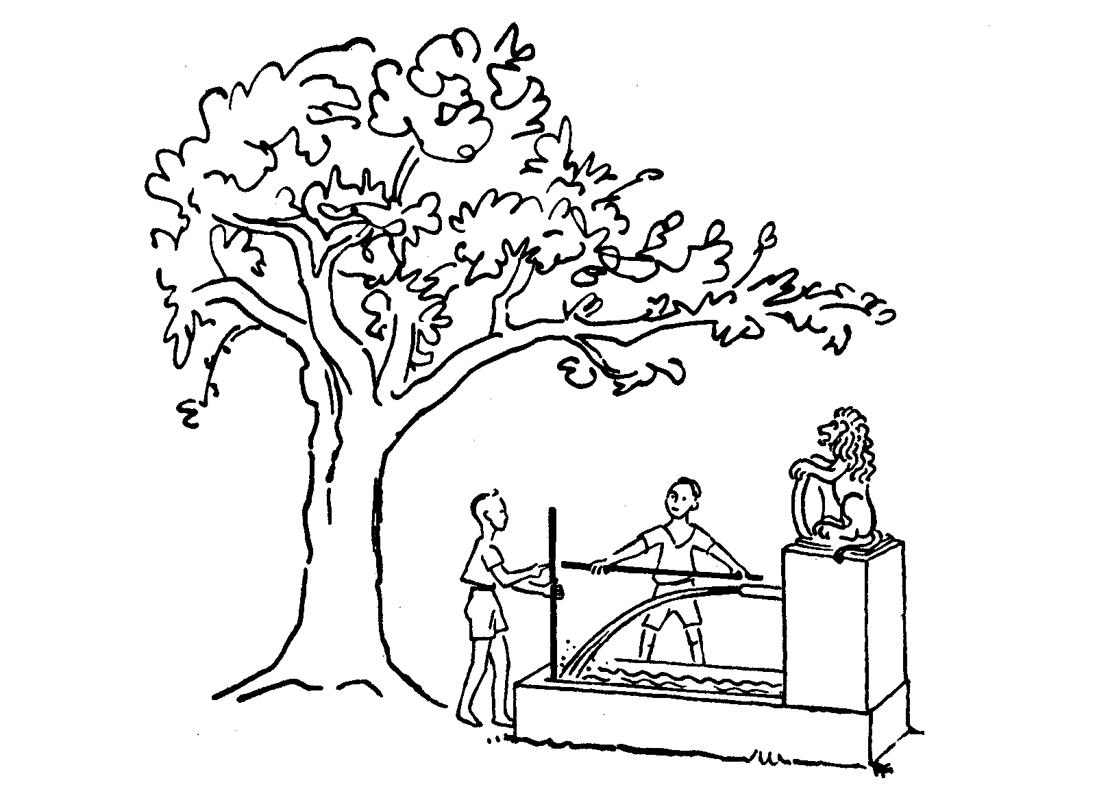 4. Wahrscheinlich ist es dieser Kampf, der den Knaben nicht müde werden lässt, den Steinen, die er wirft, mit dem Blick zu folgen: wie sie steigen, immer langsamer, immer flacher, wie die Schwere sich immer mehr durchsetzt; den Strahl dann aufzurichten, immer steiler; und immer gefesselt zu sein von der Anmut seiner Wurflinie, in der das Werfen mit dem Fallen streitet. - Der künstlerisch Empfindende nimmt es in unbewusster Freude wahr, wie er auch in der Musik das Gesetzliche ohne Nachdenken aufnimmt. Der Denkende fühlt sich vor diesem Wasserstrahl angeregt, der Anmut nachzugehen und zu fragen, worauf sie beruhe. Denn es ist etwas Maßvolles in dieser Linie, das uns zum Messen ermutigt.