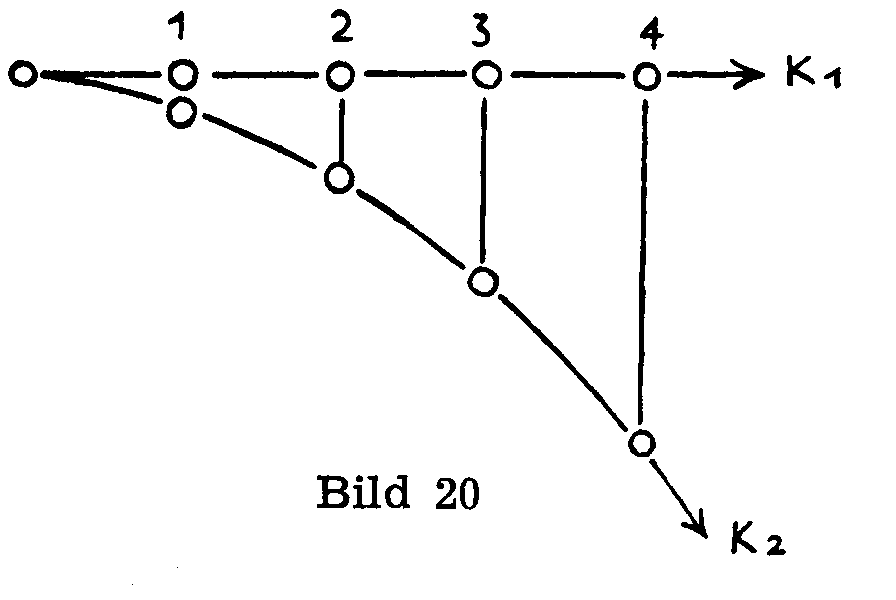 7. Wenn wir nun in einem solchen Netzwerk messen, finden wir bald das seltsame Gesetz, das die Form des Strahles bestimmt: